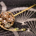 華かんざしは、日本の伝統美を感じさせる桜をモチーフにした、下がり雫が印象的な髪飾りです。
