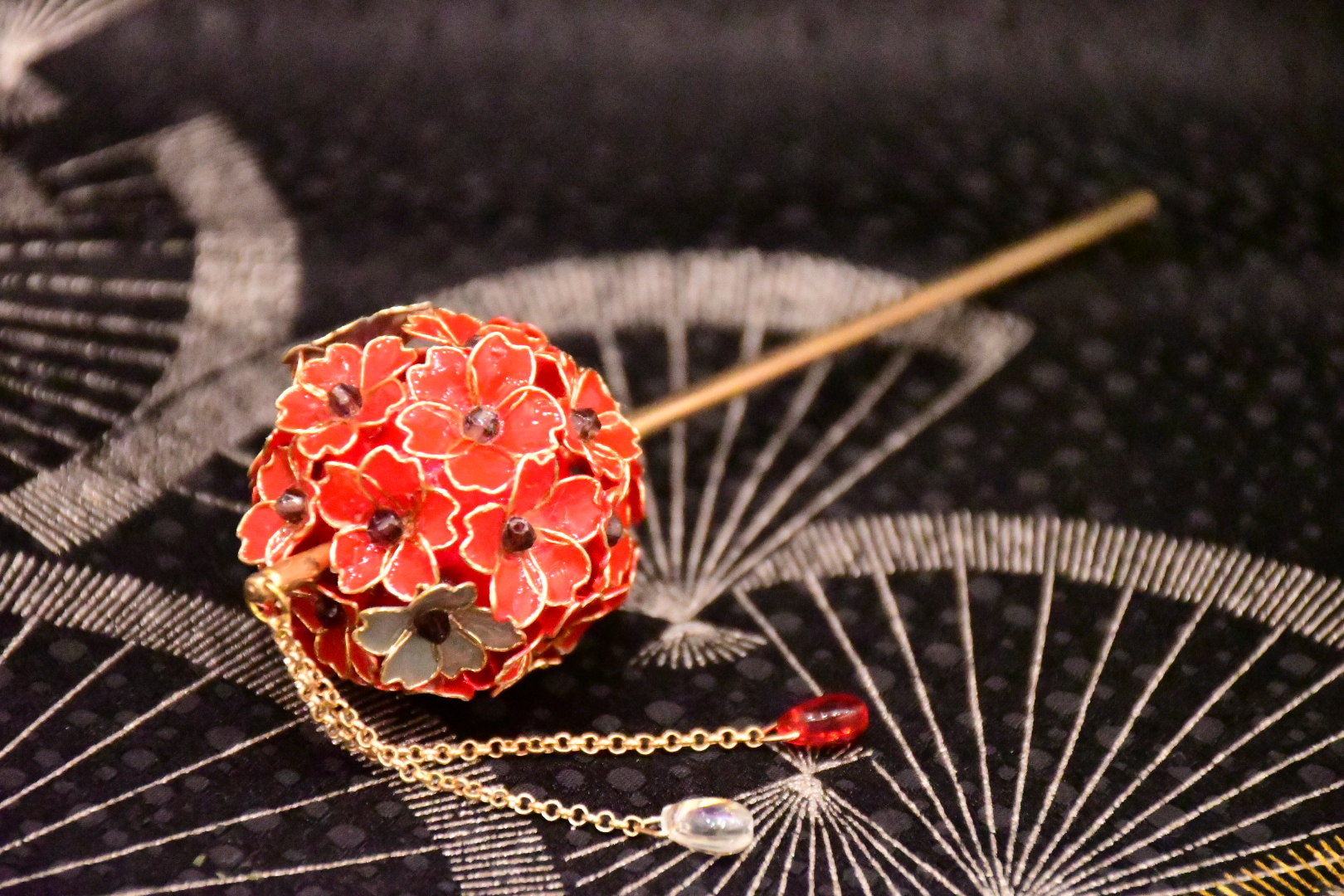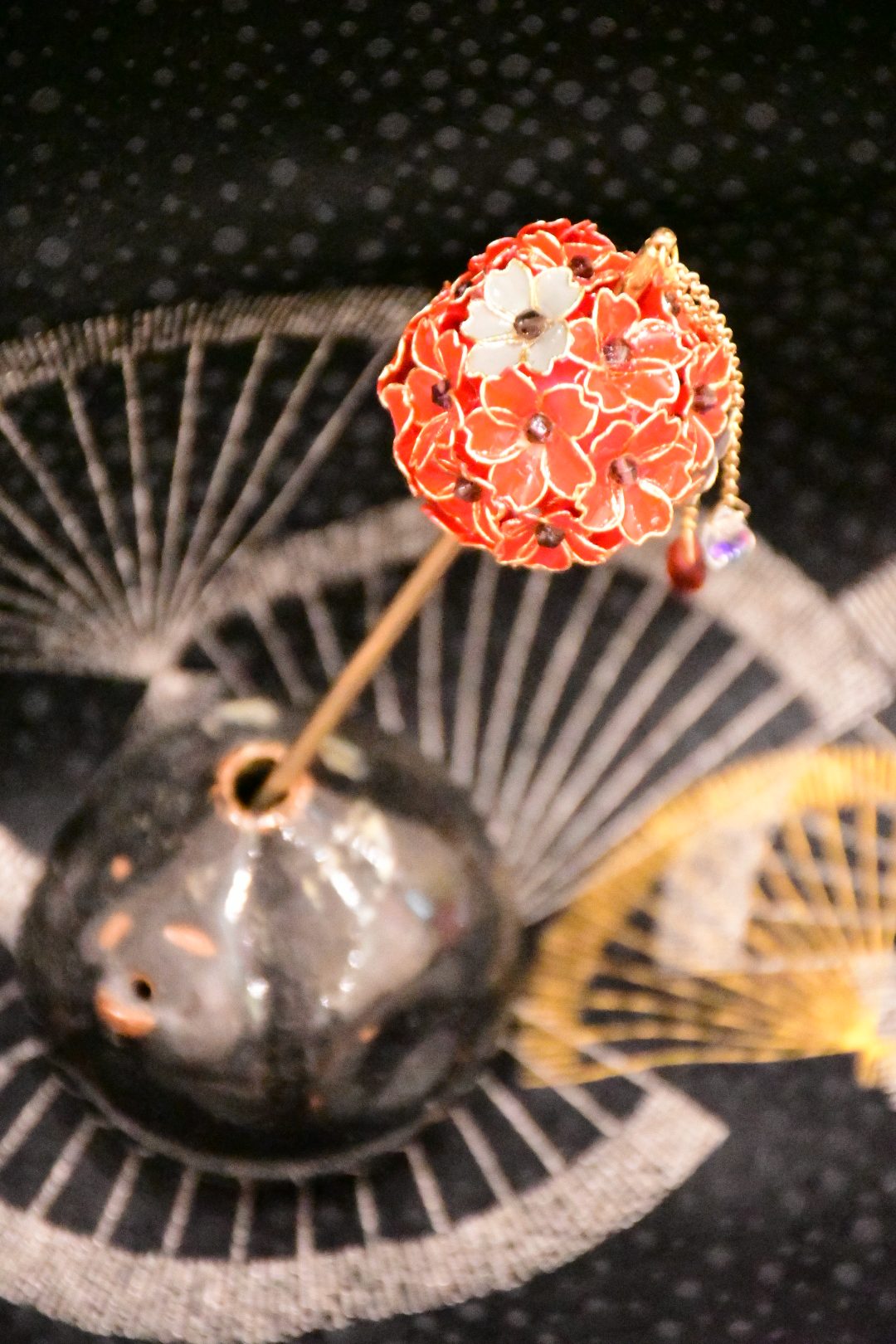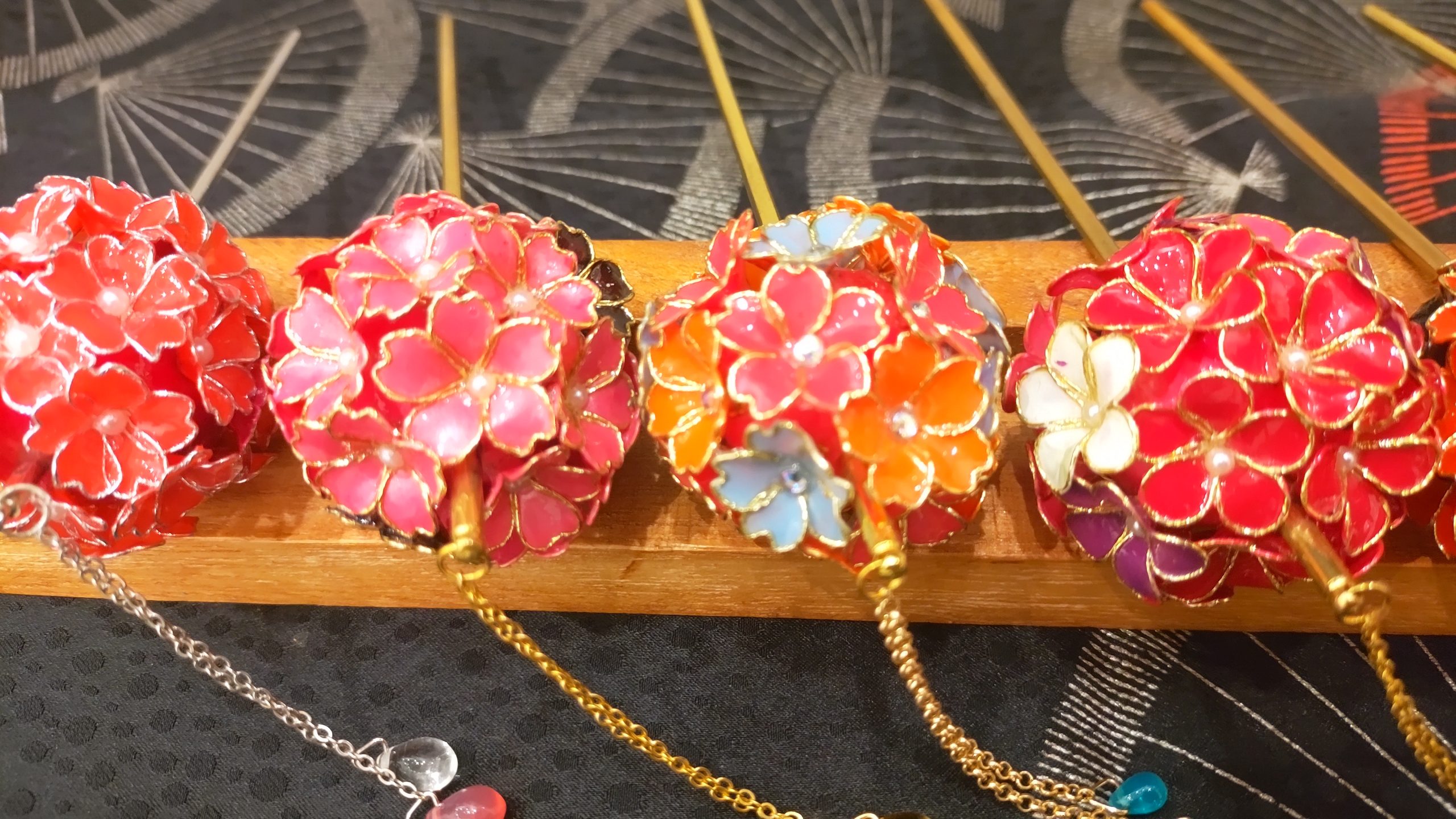 「華かんざし」は、ディップアートの技法を用いて丁寧に仕上げた、和の髪飾りです。
